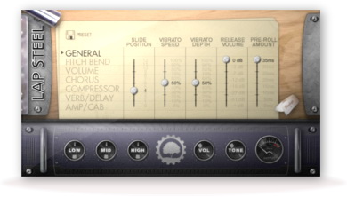 realistically re-excite the strings, lengthening the sustain. Lap Steel